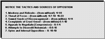 Take heart, Leaders! Nehemiah met the opposition as he usually did, with PRAYER (4:4 "Hear, O our God; for we are despised...") The opposition did not succeed, but verse six stands as a KEY VERSE for the entire book "So we built the wall; and all the wall was joined together unto half the height thereof: for the people had a mind to work."